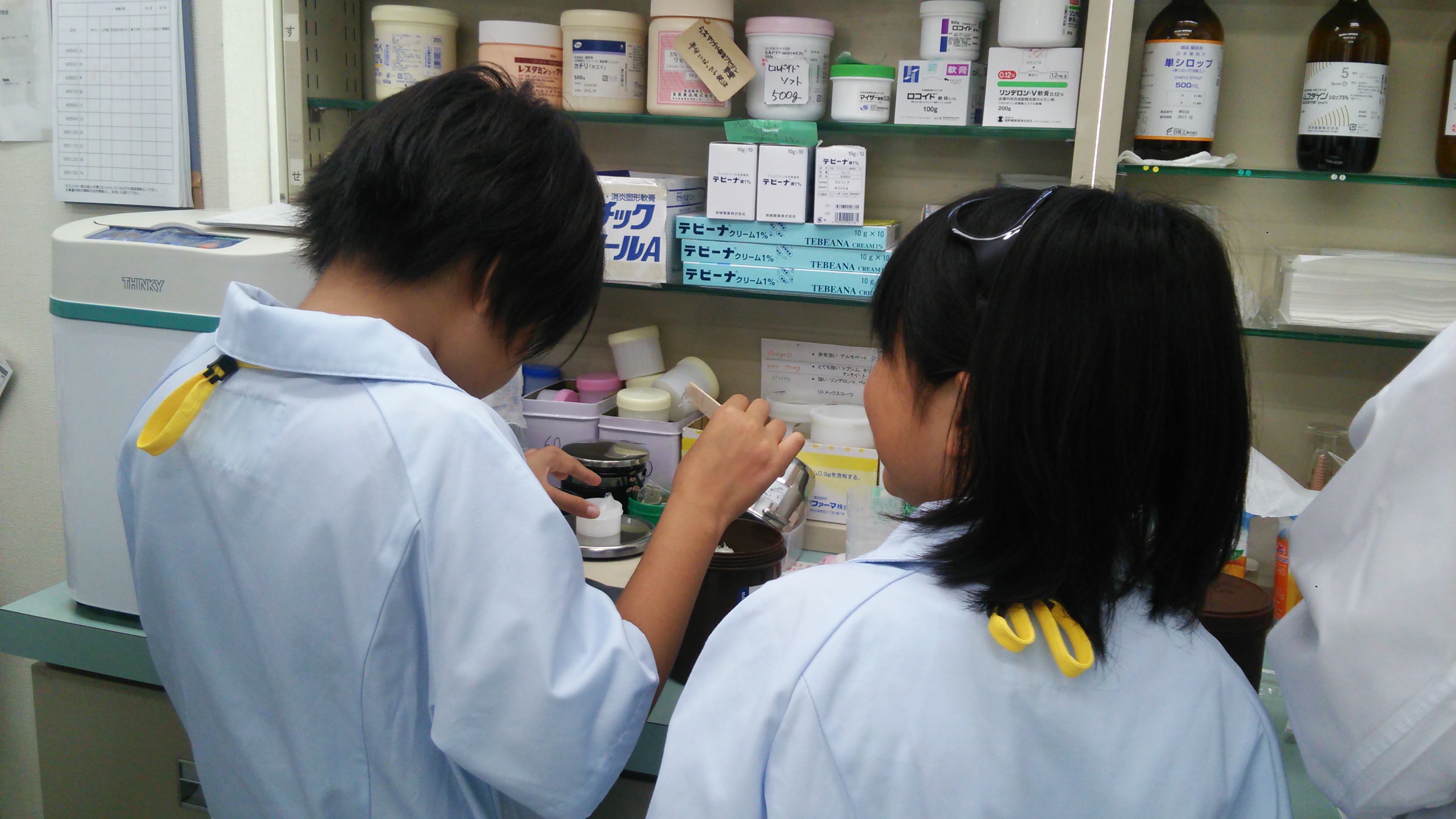 1チーム30分と短い時間でしたが、処方箋を見て棚からお薬(チョコレート)を探したり、容器に軟膏を詰めたり、ジュースを量って容器に入れたりしました。