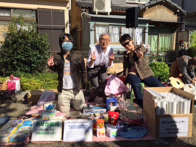 かえで薬局の方は、当初の予定では診療所横の公園を大きく使って舞台を用意して出し物もいくつも予定されていたのですが、朝があいにくの雨模様、当初の予定より規模を縮小して、舞台は診療所の待合室・福引やバザーは薬局の待合室に移動、ビニールシートを屋根代わりにしての屋台。狭いながらも組合員さんを中心に盛り上がりました。その活気に押されたのか天気も徐々に回復。こちらでは、職員は組合員さんに混ざって運営のお手伝い。会計や福引の受付として活躍しました。