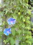 市役所入り口で育てている、あさがおとほおずきです。