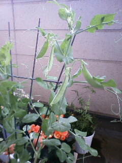 先日、一番大きくなった実を収穫し、さっと塩ゆでして、いただきました。収穫したてのスナップエンドウの甘さとみずみずしさにとても感動しました。