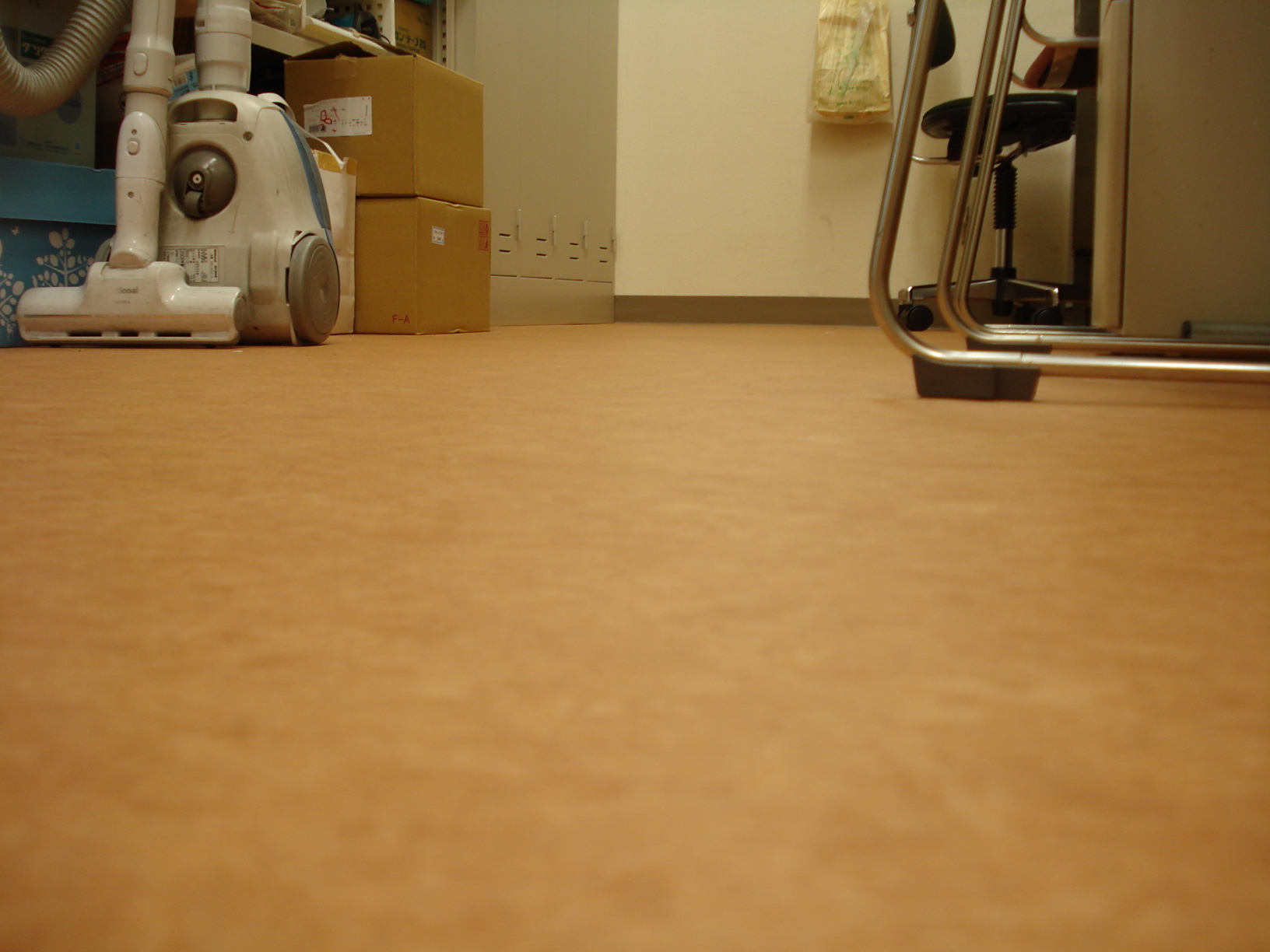 上の写真は、調剤室の床(色はグリ-ン)、下の写真は事務室の